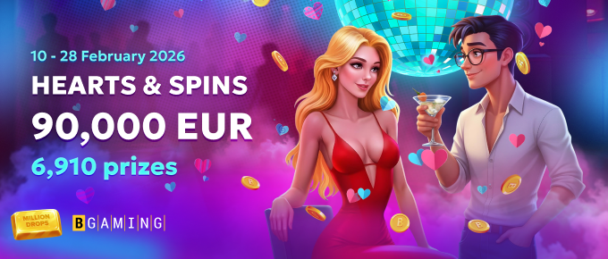 Get ready for Million Drops! With Hearts & Spins across 100 participating games and €90k in prizes waiting to be won. Every spin brings new excitement, bigger rewards, and endless opportunities to climb the leaderboard. Don’t miss your moment to spin big and turn every play into a winning experience!